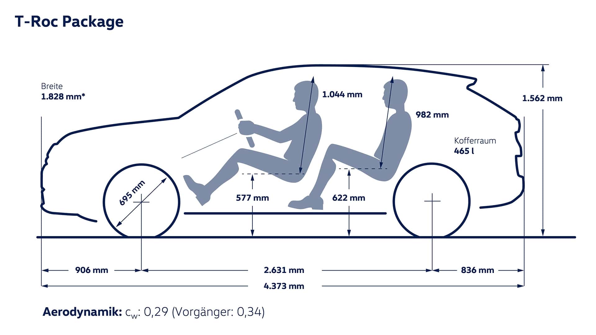 01Más espacio para hasta cinco personas. El nuevo T-Roc ofrece un espacio ideal para viajes largos y familias. Incluso con personas de más de 1,85 m de altura, los pasajeros de estatura similar pueden sentarse cómodamente en la parte trasera gracias a los 12 cm adicionales que se han añadido a la longitud del nuevo T-Roc. Además, por primera vez en el T-Roc, estará disponible en la versión Style un asiento ergoActive con ajuste eléctrico de 14 posiciones y función de masaje. El volumen del maletero aumenta en 30 litros, hasta los 475 litros, al cargarlo hasta la altura de los respaldos de los asientos traseros.