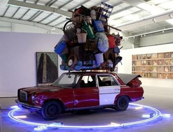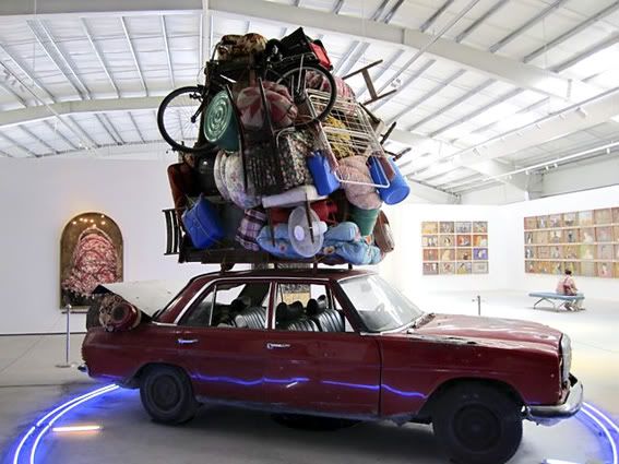 http://arenaofspeculation.org/wp-content/uploads/2011/04/rafah-crossing-2.jpg llevo un rato intentando comprender eso que parece un Maybach construido por un nieto cani de Picasso. edito: sí, es un Maybach 57. se usó para el videoclip de ‘Otis’, de Kanye West y Jay-Z.