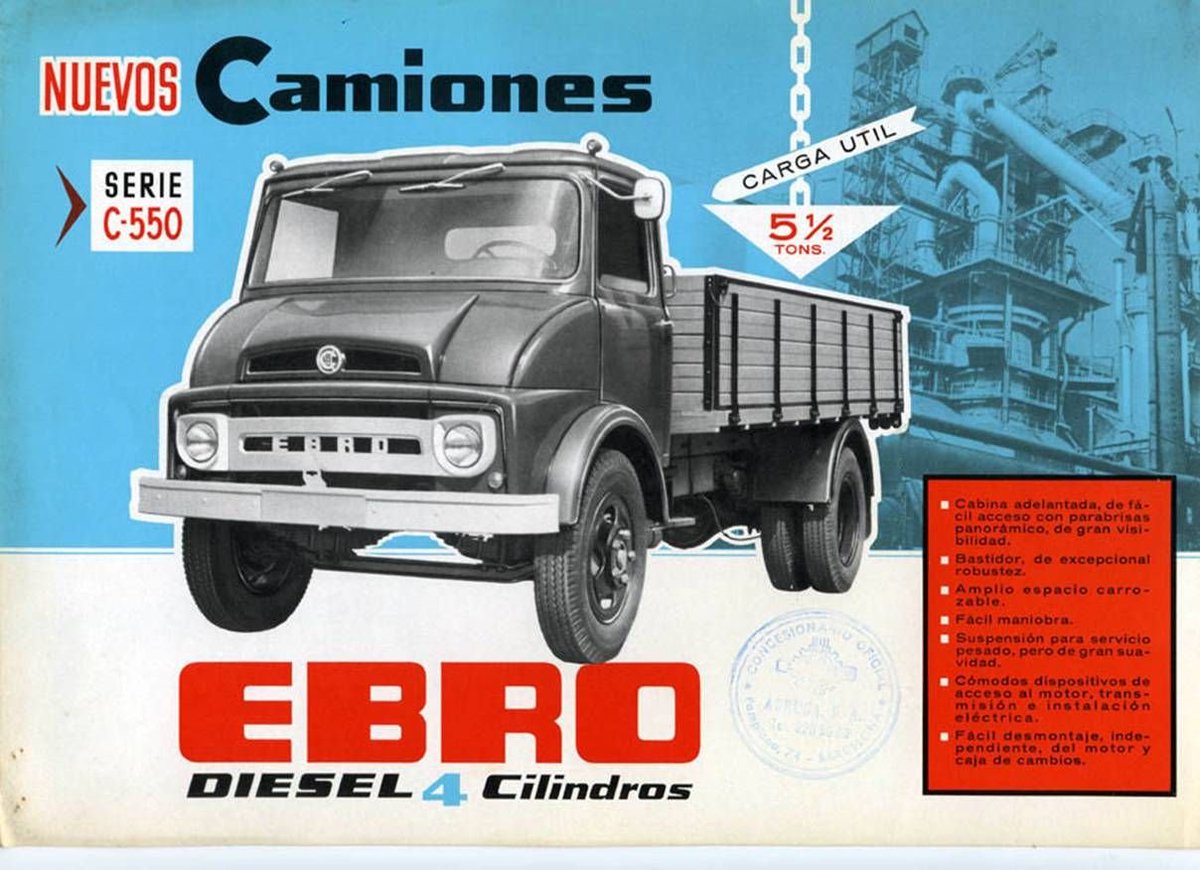 La marca EBRO nació en 1954 de la mano de su matriz Motor Ibérica, con una larga tradición en la construcción de vehículos desde principios del siglo XX. Esto se debe a que nació de la nacionalización de las actividades industriales de Ford y se llegaron a acuerdos con el fabricante americano para vender en España productos con licencia. Como curiosidad, el nombre Ebro era un paralelismo con el Ford Thames, el primer camión en el que se basó el fabricante nacional. En los años 60 se llegan a otros acuerdos con Massey Ferguson (tractores) y Alfa Romeo (furgonetas). También se adquirió al rival directo Avia y las licencias Jeep de Viasa.