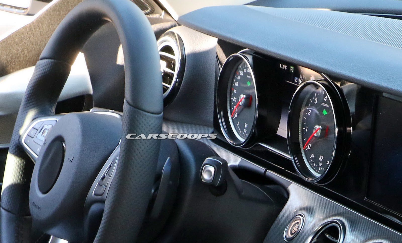 http://i.auto-bild.de/ir_img/1/3/6/3/6/2/5/Mercedes-E-Klasse-Detroit-2016-Mitfahrt-1200×800-8cc8eaf4ae772ce0.jpg http://www.autobild.de/artikel/mercedes-e-klasse-detroit-2016-mitfahrt-7182047.html Nuevas espias, con el interior totalmente desnudo. Este lleva todo el cuadro en formato pantalla gigante