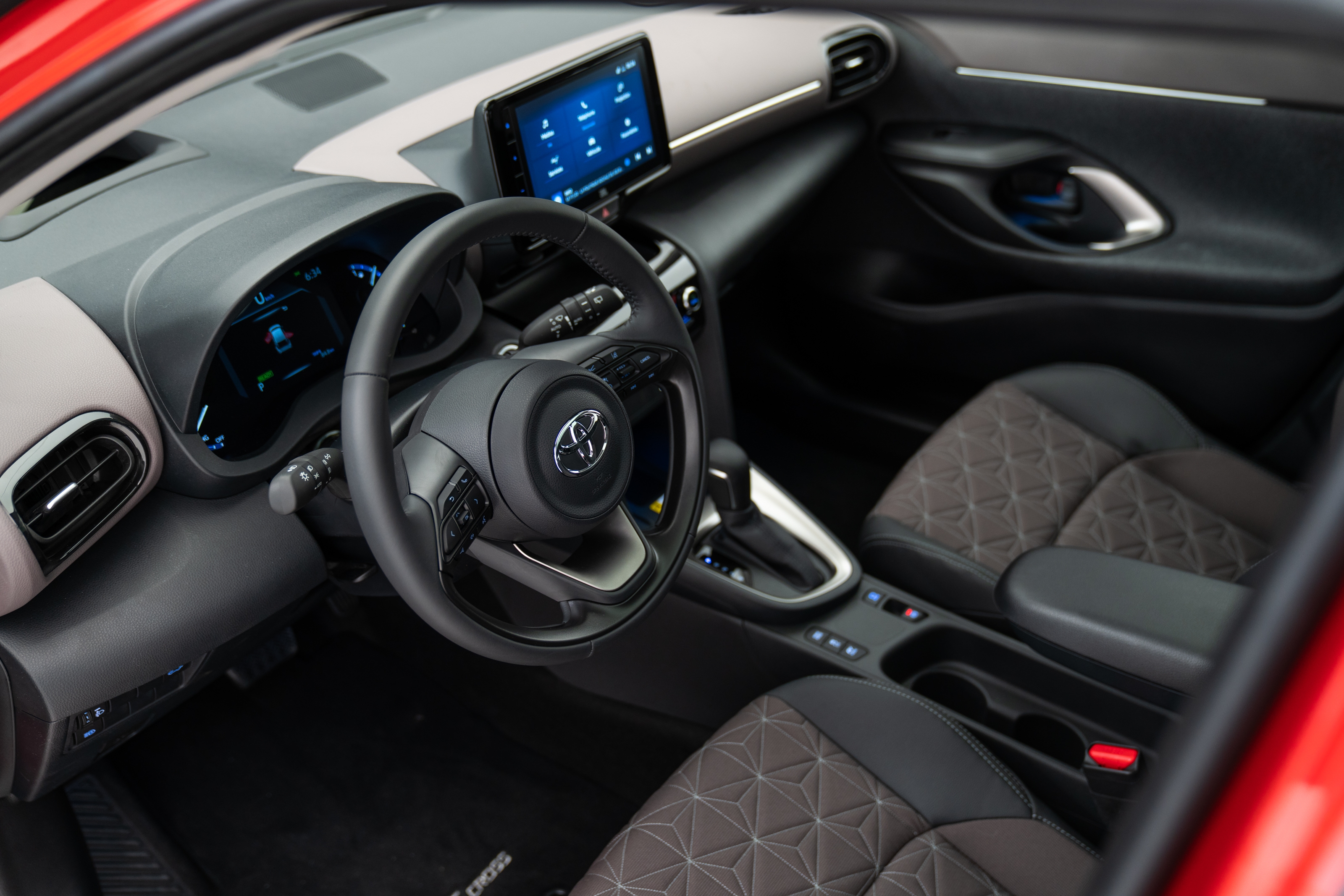 La nueva pantalla táctil central, es bastante rápida y receptiva, es una pulgada más grande que la presentada. También contiene algunas características nuevas. Con el Yaris Cross, los compradores se beneficiarán de una tarjeta SIM 4G integrada (sin suscripción durante los primeros cuatro años). Suficiente para darles acceso, a través de las funcionalidades Smart Connect y la aplicación móvil MyT, y una lista de funciones conectadas. Algunas de estas opciones maximiza sus posibilidades de encontrar un lugar de aparcamiento en las calles circundantes.