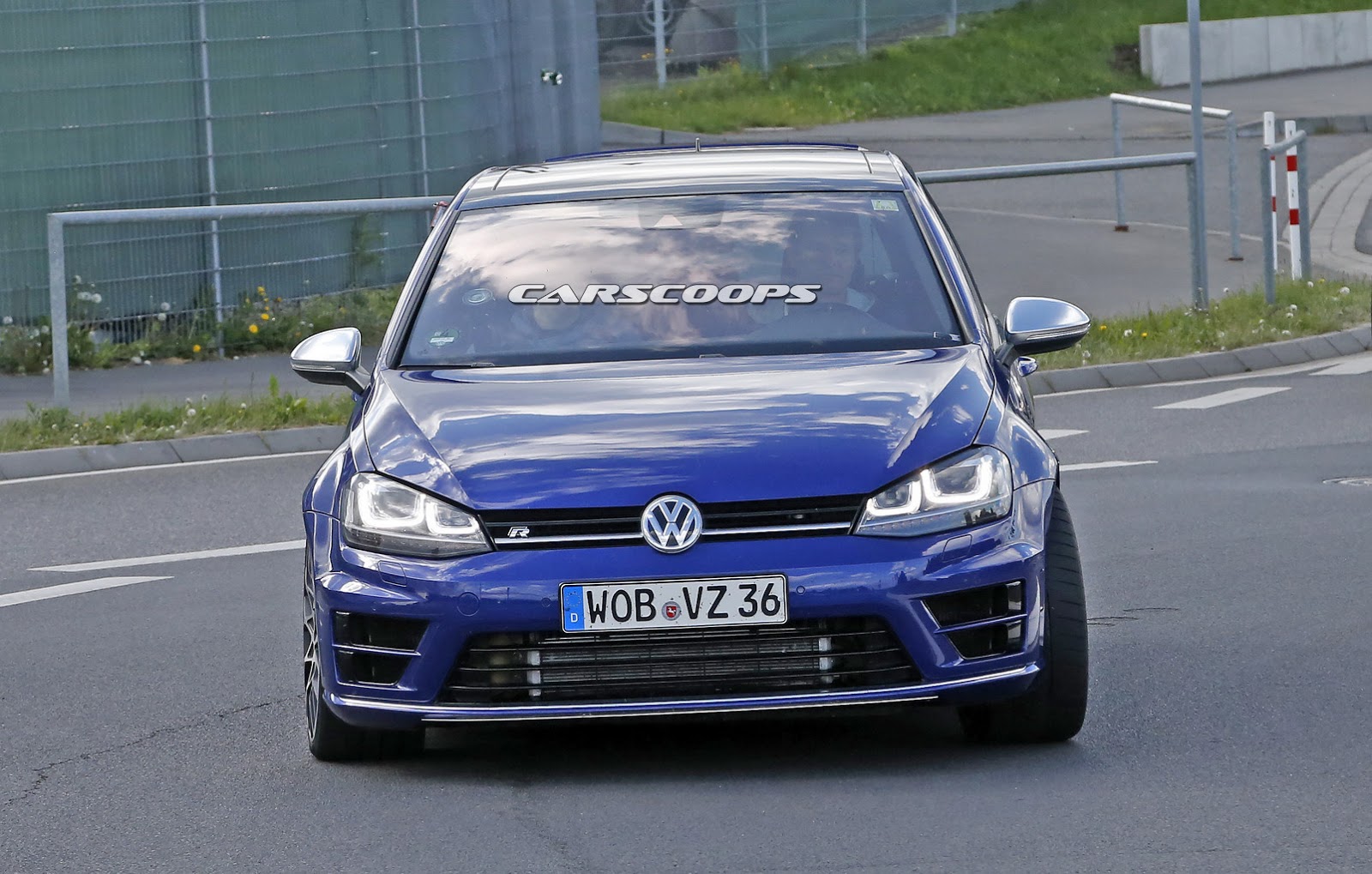 Pillado en Nürburgring este Golf con aletas ensanchadas, alerón, discos de frenos lobulados y neumáticos Pilot Sport Cup 2. Vendría a ser la versión de serie del [url url=http://cochespias.net/viewtopic.php?f=3&t=18994&hilit=golf]R400 Concept[/url]